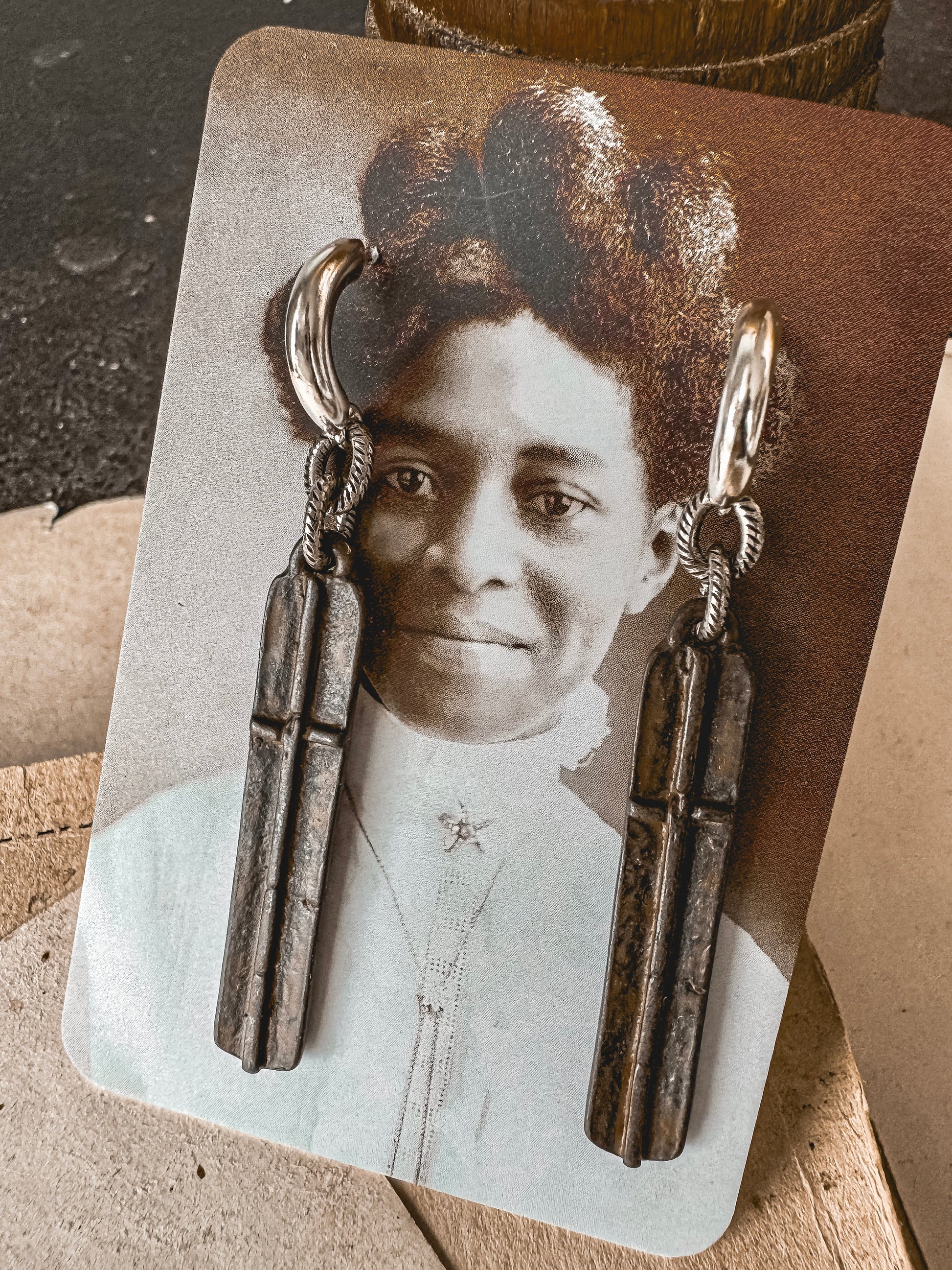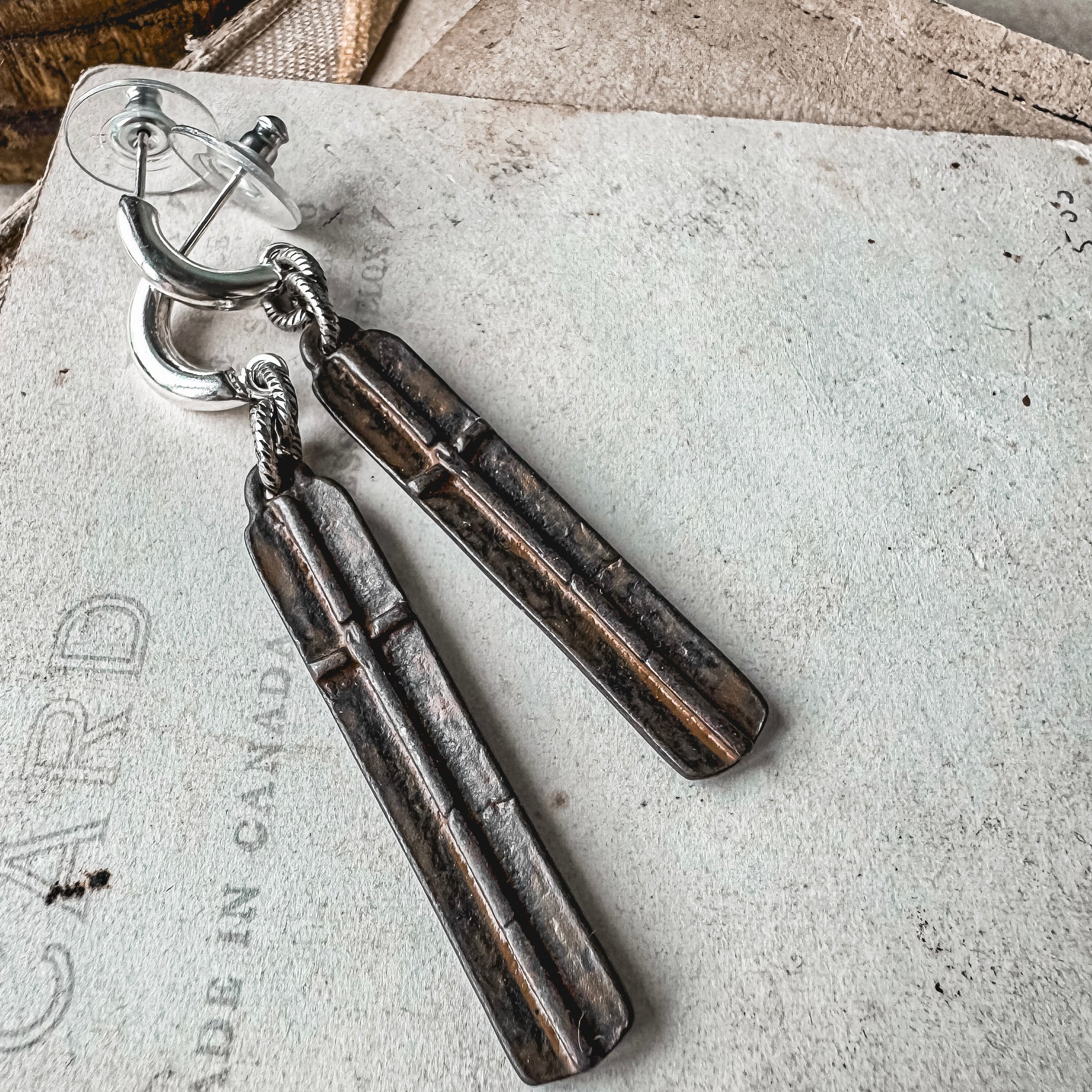 Warm cocoa brown, bar cross charms combine beautifully with polished sterling silver posts in these effortlessly chic earrings. Contrasting earthy, rustic details with contemporary curves creates a captivating blend of vintage soul and modern edge. Lightweight and comfortable to wear, these long dangle earrings are the perfect accessory for anyone seeking that laid back, bohemian aesthetic with an understated touch of sophistication.